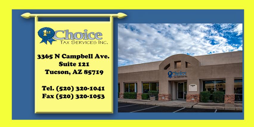 Welcome to 1st Choice Tax Services Inc. Business Directory Things To Do Local Resources Blog. First Choice Tax Services can be contacted at 520 320-1041.